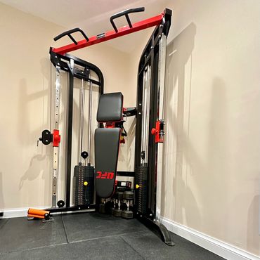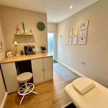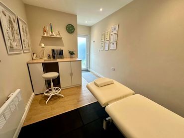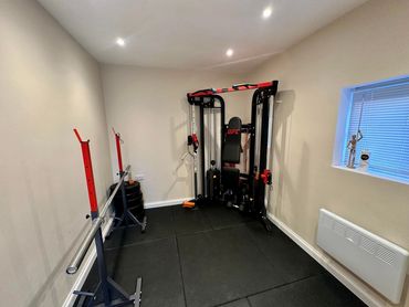 Our treatment room is warm and relaxing with soft lighting, contemporary furnishings and high-quality electric treatment couch. Our rehab gym is equipped with a squat rack, cable machine, barbells & plates and numerous balls, bands and balance equipment.